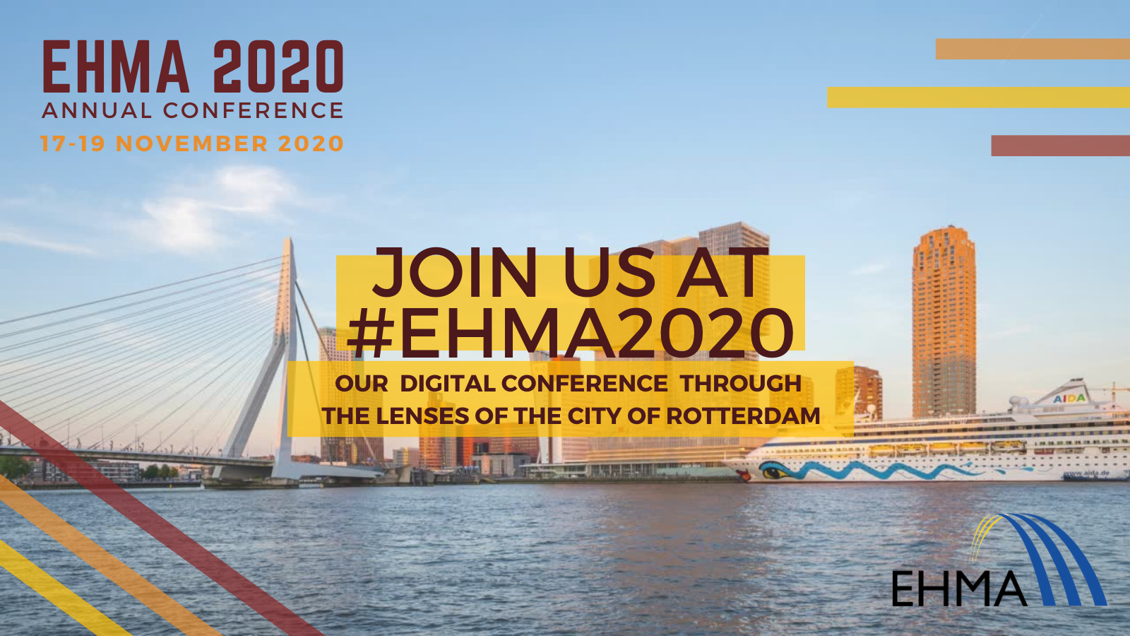 EHMA 2020 is the 25th annual European conference on health management, taking place digitally through the lens of Rotterdam on 17-19 November 2020. The theme is “Health Management: realigning systems, contexts and players”. The European Health Management Association (EHMA) is the custodian of the conference, which has been organised this year in collaboration with the Erasmus School of Health Policy & Management; Erasmus Medical Centre; and the Healthcare Organisation of the Dutch Ministry of Defence.